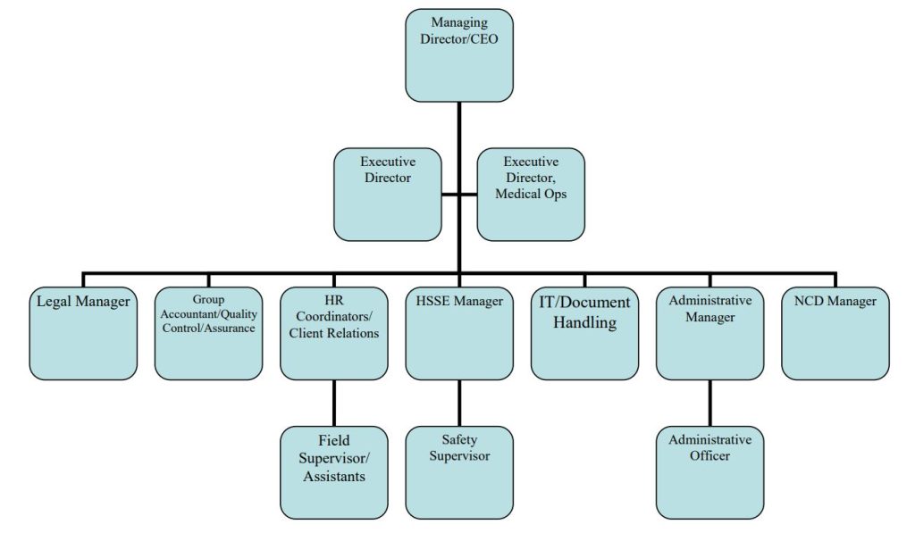 The company has a simple organizational set up which ease our administrative running. All our employees are computer literate. We have the Board, which consists of Chairman and five directors while the management team is led by the managing director followed by the Executive Directors, General Manager, Two Managers and Officers. At the base are some administrative sub officers and personnel forming integral parts of the team for efficiency.